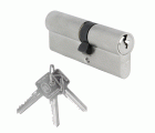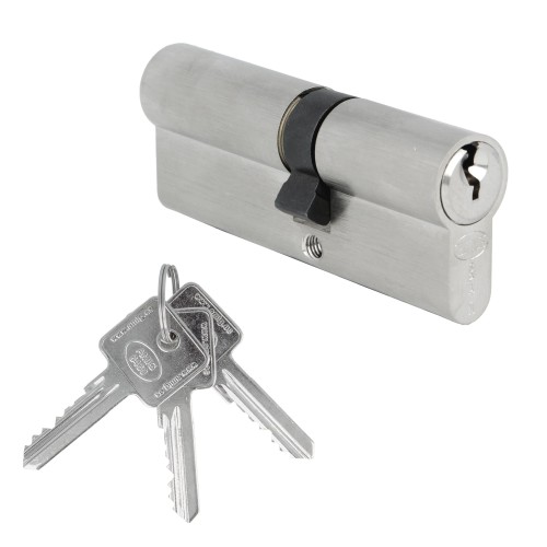 Cilindro económico de cerraduras para carpintería de madera en obra. Cilindro de serreta en latón con 5 pines y leva de 15 mm. Pin antitaladro en el cuerpo. Incluye tornillo de 55 mm. Incluye 3 llaves de latón. Llave en bruto modelo 6460.