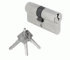 Cilindro económico de cerraduras para carpintería metálica en obra. Cilindro de serreta en latón con 5 pines y leva de 15 mm. Pin antitaladro en el cuerpo. Incluye tornillo de 55 mm. Incluye 3 llaves de latón. Llave en bruto modelo 6460.