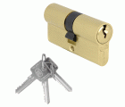 Cilindro económico de cerraduras para carpintería metálica en obra. Cilindro de serreta en latón con 5 pines y leva de 15 mm. Pin antitaladro en el cuerpo. Incluye tornillo de 55 mm. Incluye 3 llaves de latón. Llave en bruto modelo 6460.