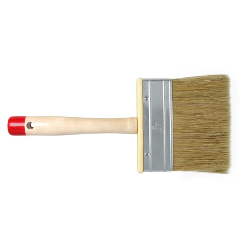 Mezcla de PVC y cerda pura. Mango de madera barnizada. Virola niquelada. Indicada para trabajos en grandes superficies.