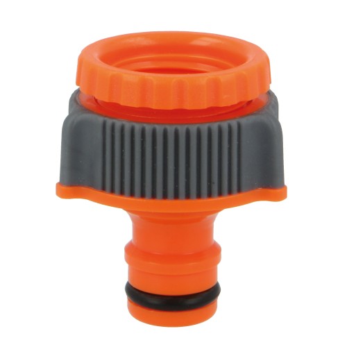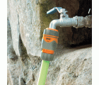 Adaptador y reductor para unión de grifo y manguera. Fabricado en plástico ABS y goma de alta calidad. Resistente a las heladas y a los rayos UVA. Rápida y fácil conexión de mangueras de agua.