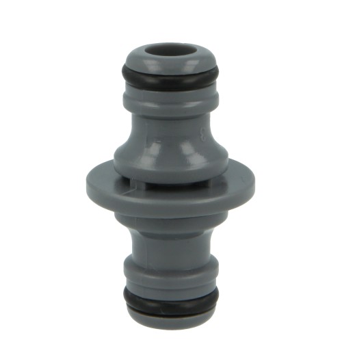 Manguito de conexión rápida. Fabricado en ABS y goma de alta calidad y resistencia. Para unir dos mangueras equipadas con conectores hembra. Acoplamiento macho para el raccor porta manguera.