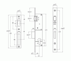 Cerradura de embutir para perfiles europeos de carpintería metálica. Picaporte de rodillo y palanca de cierre deslizante. Accionamiento sólo por medio del cilindro. Alojamiento para cilindro Europerfil con leva de 15 mm. Distancia entre nueca de manilla y alojamiento de cilindro: 85 mm. Frente y soporte de acero.