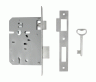 Cerradura de embutir para madera con llave de gorja en canto cuadrado. Entrada de 60 mm y distancia entre nuecas de 68 mm. Llave en bruto modelo F9716.