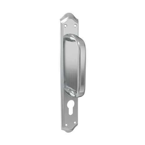 Manillón fabricado con placa de acero y tirador de zamak. Dispone de bocallaves para cilindro Europerfil. Accesorios de instalación incluidos.