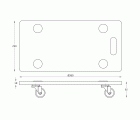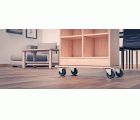 Soporte rodante rectangular con base de madera MDF. Alfombrillas antideslizantes de goma EVA. Ruedas de polipropileno, 2 con freno y 2 sin freno. Espesor: 1,8 cm. Carga máxima 200 kg. Certificado FSC.