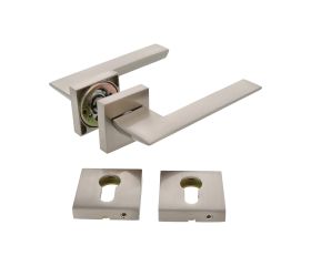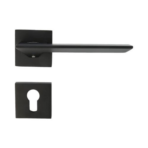Juego de manillas con roseta cuadrada y bocallaves para cilindro Europerfil. Fabricado en aluminio de alta calidad. Incluye llave Allen para su instalación y tornillos pasantes antirrobo.