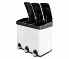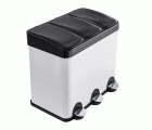 Cubo de reciclaje triple. Tapa y base de plástico negro. Con pedal de apertura. Capacidad: 3 x 15 l.