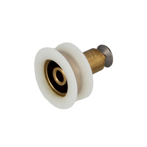 Rodamiento semicircular de Ø24 mm con tornillo avellanado PHILIPS DIN 965 A2-M5X8 para mampara. Su diseño y materiales permiten que las puertas se deslicen sobre los raíles para una correcta apertura y cierre de las mismas.