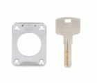 Cerradura de sobreponer para puertas de madera. Mecanismo interno de acero niquelado y bicromatado. Palanca de cierre cromada, desplazamiento 22 mm (a 2 vueltas). Picaporte de latón cromado, con tirador. Cilindro redondo de seguridad exterior Ø25X50 mm e interior Ø25X34 mm. 5 llaves de puntos de latón niquelado. Llaves en bruto modelo 5000.