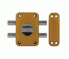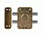 Pasador de sobreponer para puertas de madera. Con 2 bulones de cierre y muletilla interior. Pasador de acero de Ø 14 mm.
