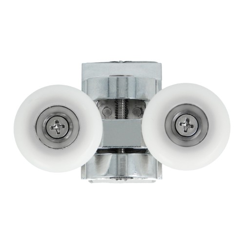 RODAMIENTOS DE ALTA CALIDAD EN ZAMAK Y NYLON: Fabricados en zamak con ruedas de nylon de Ø25 mm, estos rodamientos están diseñados para ofrecer un deslizamiento suave y silencioso, ideal para mamparas de ducha o puertas correderas de cristal.