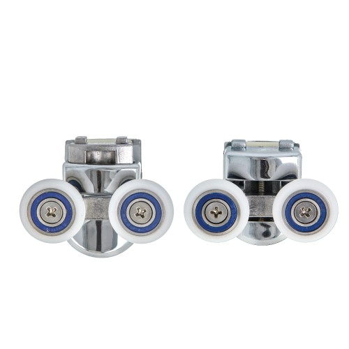 - JUEGO DE RODAMIENTOS DE ZAMAK DE ALTA CALIDAD: Este juego incluye rodamientos de pinzas superiores e inferiores, fabricados en zamak con acabado cromado, ideales para mamparas de ducha o puertas de cristal, ofreciendo durabilidad y resistencia.