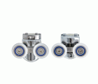 Juego de rodamientos de pinzas de zamak (superior e inferior) con ruedas de nylón de Ø23 mm. Para mamparas de espesor de 6 mm.