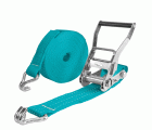 Eslinga con carraca. Fabricados en tela PES. Con trinquete y ganchos doble J. Certificado de homologación según normativa EN 12195-2:2000.