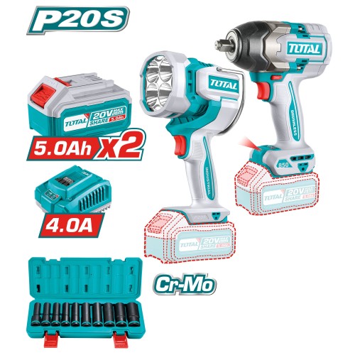 | 41848 | TOTAL 41848 | Lote llave de impacto + foco a batería TOSLI241181E | 20 V | 20 V | 6932584804283 |