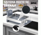 SISTEMA DE DRENAJE EFICIENTE: Equipado con una bandeja de goteo que recoge el exceso de agua de manera eficaz, este escurreplatos evita que se acumule agua en la encimera, manteniéndola seca y limpia. Además, el soporte desmontable para cubiertos ofrece un almacenamiento práctico para cuchillos, tenedores, cucharas y otros utensilios.