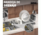 BANDEJA PARA GOTEO EXTRAÍBLE: Incluye una bandeja de goteo que recoge el exceso de agua de los platos y cubiertos, manteniendo tu encimera siempre seca y ordenada. El soporte para cubiertos desmontable facilita el almacenamiento de los utensilios, permitiendo que se sequen de forma rápida y eficiente.