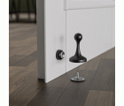 Tope de acero inoxidable para retención de puertas de paso. Magnético. Suelo o pared. Incluye accesorios de fijación.