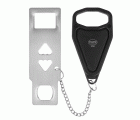 Bloqueo portátil para puertas que disponen de un picaporte para su cierre. Fabricado en acero inoxidable, con mecanismo en plástico de alta resistencia. Para puertas de apertura hacia el interior. Es fácil de instalar sin necesidad de herramientas y evita que la puerta se abra desde el exterior, proporcionando mayor privacidad y seguridad.