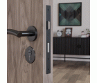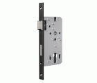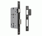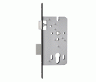 Cerradura de embutir para puertas de madera con palanca de cierre. Frente y soporte en acero en canto cuadrado. Picaporte reversible. Distancia entre nueca de manilla y alojamiento de cilindro Europerfil: 70 mm. Entrada: 50 mm. Nueca para manilla de 8 mm. Sin escudo ni cilindro.