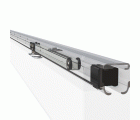 Kit para puertas correderas compuesto de: 1 perfíl guía de 1,86 m total, 1 tapa embellecedora de 1,86 m total, 2 tapones finales, 1 polea deslizante con cierre amortiguado, 1 disparador de cierre, 1 polea deslizante, 5 separadores de pared, 2 topes de puerta, 1 guía inferior, 2 uniones rail-puerta y tornillería de fijación. Anchura máxima de puerta: 93 cm. Peso máximo de puerta: 60 kg. Espesor de puerta: 25-40 mm. Para puertas de madera.