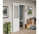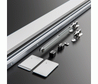 Kit para puertas correderas compuesto por un perfil guía de 1,86 metros, una tapa embellecedora, dos tapones finales, una polea deslizante con cierre amortiguado, un disparador de cierre, una polea deslizante adicional, cinco separadores de pared, dos topes de puerta, una guía inferior, dos uniones rail-puerta y la tornillería necesaria para su fijación. Para puertas de madera de entre 25 y 40 mm de espesor, permite una anchura máxima de 93 cm y un peso de hasta 60 kg.