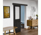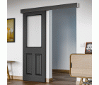 Kit para puertas correderas compuesto por un perfil guía de 1,86 metros, una tapa embellecedora, dos tapones finales, una polea deslizante con cierre amortiguado, un disparador de cierre, una polea deslizante adicional, cinco separadores de pared, dos topes de puerta, una guía inferior, dos uniones rail-puerta y la tornillería necesaria para su fijación. Para puertas de madera con un espesor de entre 25 y 40 mm, permite una anchura máxima de 93 cm y un peso de hasta 60 kg.