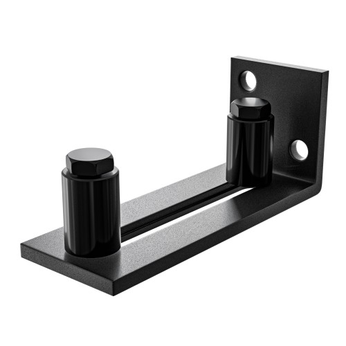 Guía inferior para puertas correderas, fabricado en acero de alta calidad con doble rodillo de nylon de alta resistencia al desgaste y deslizamiento silencioso. Los rodillos guía se ajusta mediante una ranura para adaptarse al espesor de la puerta. Para puertas de espesores hasta 55 mm.