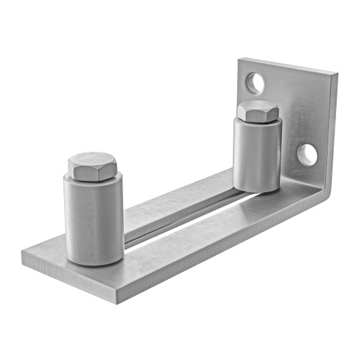 Guía inferior para puertas correderas, fabricado en acero inoxidable de alta calidad con doble rodillo. Los rodillos guía se ajusta mediante una ranura para adaptarse al espesor de la puerta. Es adecuada para aplicaciones en interiores y exteriores donde se requiere una solución robusta y estética.