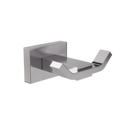 Colgador de baño. Alta resistencia a la corrosión. Diseño actualizado moderno. Base de atornillar y cuerpo en zamak. Incluye accesorios de fijación.