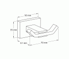 Este colgador tiene unas medidas de 71 x 76 x 35 mm, está en zamak y cuenta con un acabado en color plateado, cromado brillo.