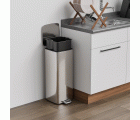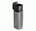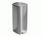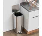 Cubo de basura en acero inoxidable de alta calidad. Tratamiento antihuellas. Tapa con cierre amortiguado y base de plástico negro. Con pedal de apertura. Capacidad: 30 l.