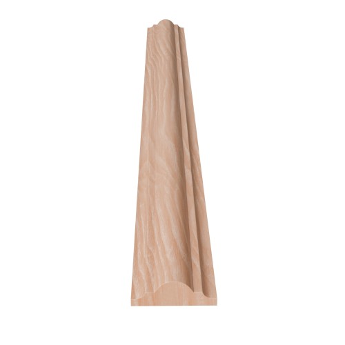 Moldura decorativa fabricada en madera de pino, que es liviana, resistente y fácil de trabajar. Perfil simétrico con relieve superior redondeado y líneas inferiores más marcadas.
